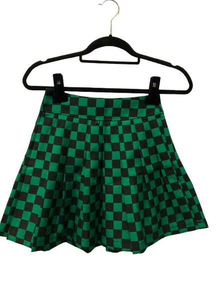 Transforme seu look com essa saia plissada de estampa checkerboard (xadrez quadriculado) nas cores verde e preto. Com um visual marcante e cheio de personalidade, ela é perfeita para compor produções no estilo alternativo, punk, street e rock. Suas pregas bem definidas trazem movimento e volume na medida certa..