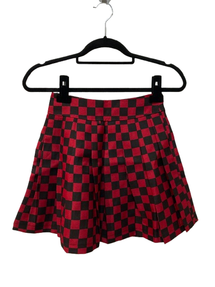 Adicione ousadia ao seu guarda-roupa com essa saia plissada de estampa checkerboard (xadrez quadriculado) nas cores vermelho e preto. Com um caimento rodado e pregas definidas, essa peça é perfeita para composições no estilo alternativo, punk, gótico e rock. Ideal para quem quer se destacar com personalidade.